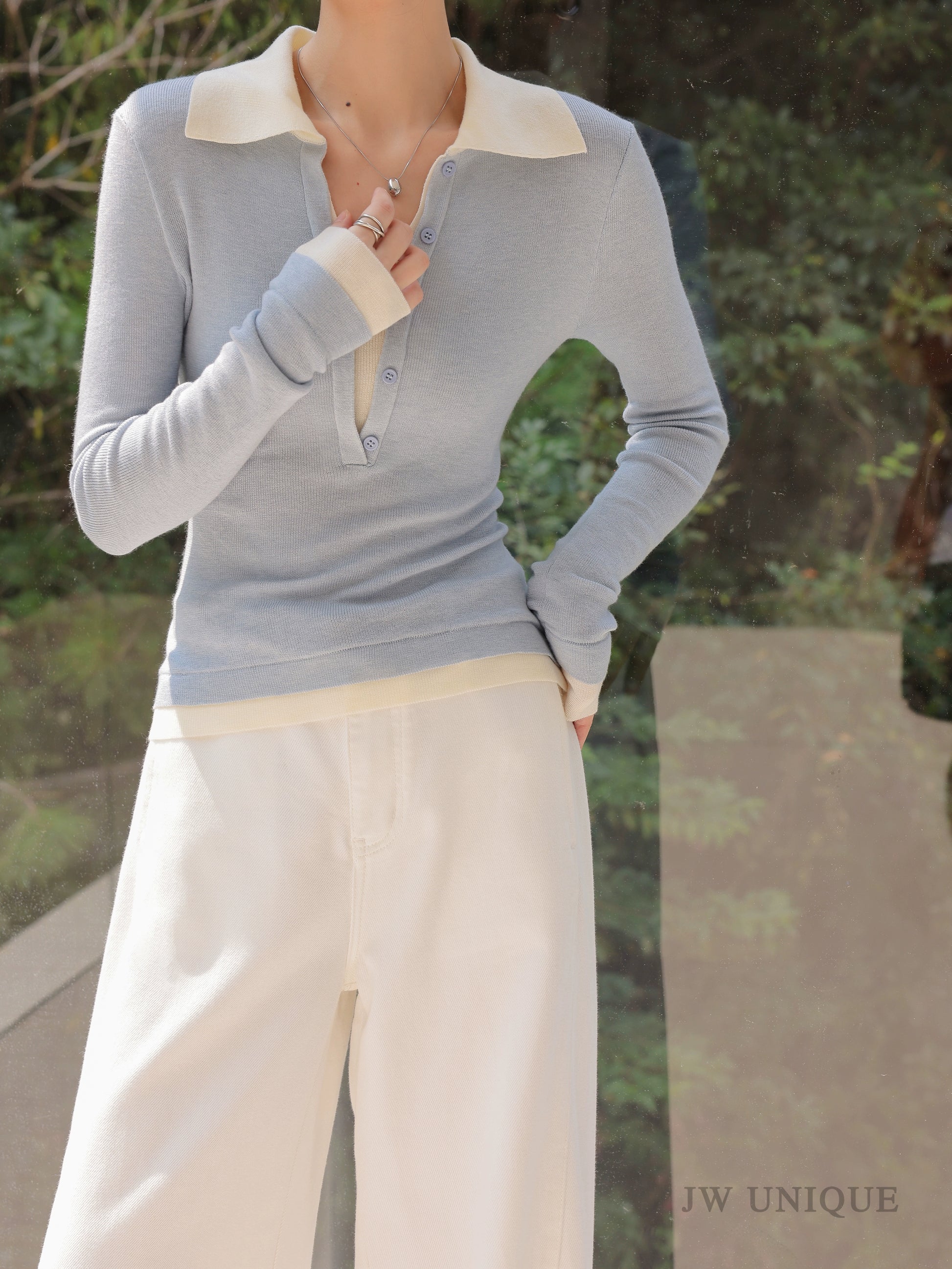 Contrast Collar Knit Top / コントラストカラーニットトップ