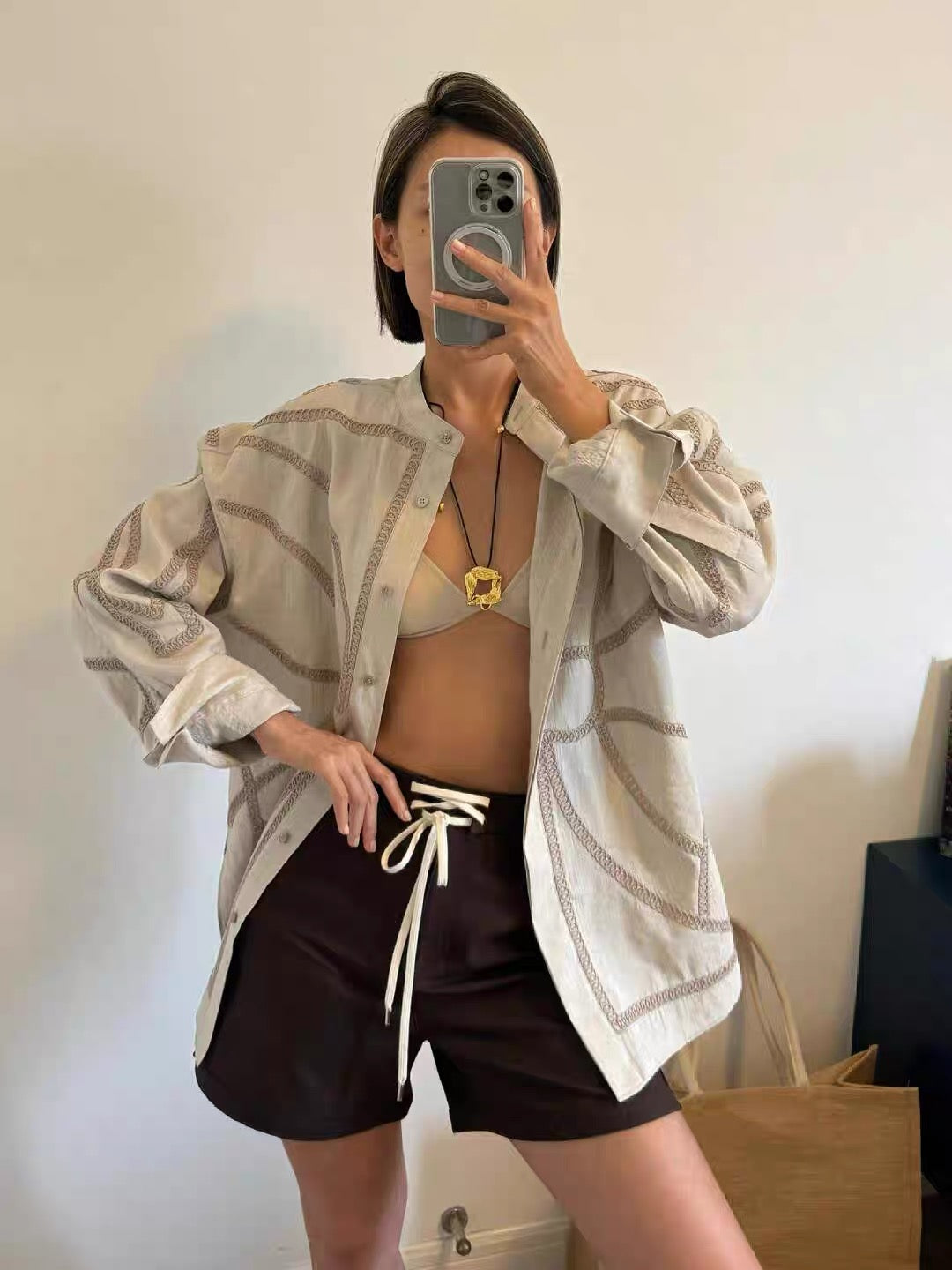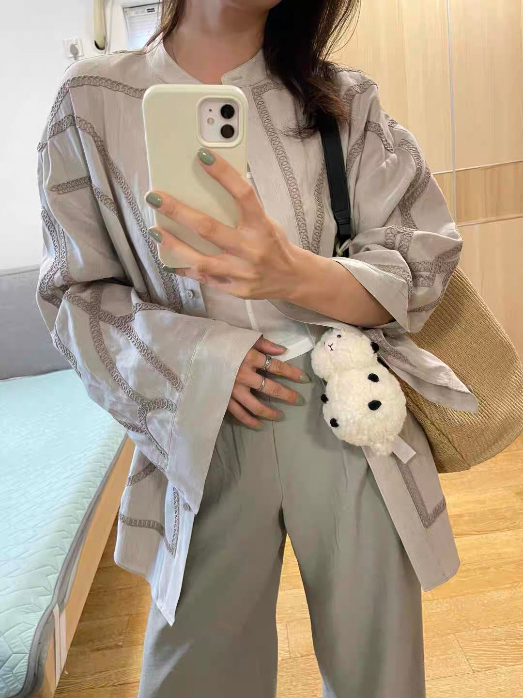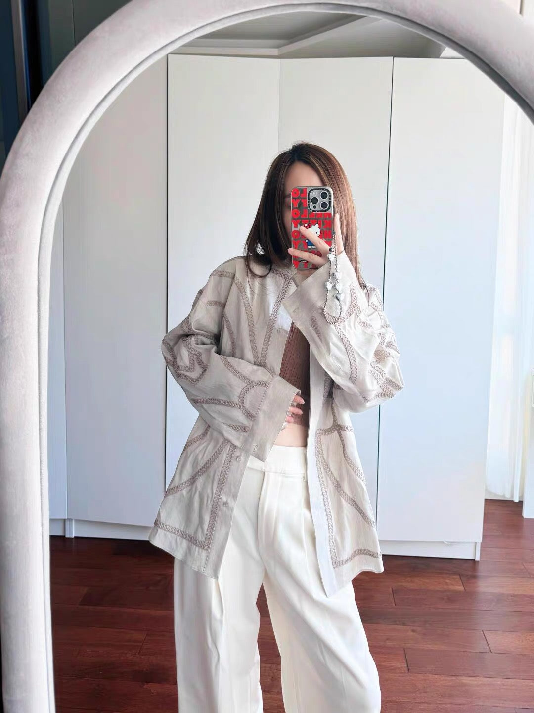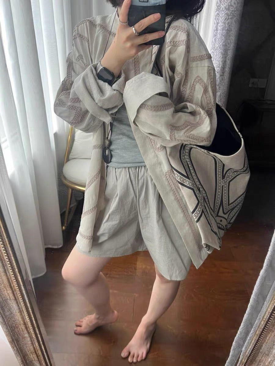 #Leorie #レディースファッション #大人コーデ #きれいめカジュアル #シャツコーデ #スタンドカラー #刺繍シャツ #羽織りアイテム #ニュアンスカラー #春コーデ #秋コーデ #オフィスカジュアル #通勤コーデ #デートコーデ